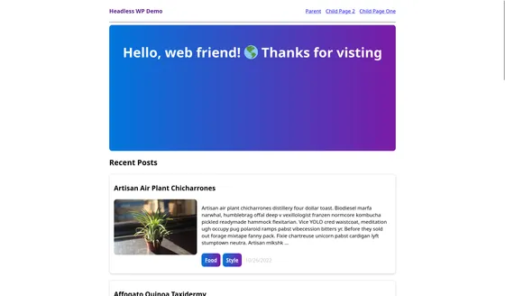This example fetches data from a WordPress site whose content types have already been configured and exposed to the REST API.